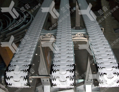 更換齒形鏈鏈條的操作步驟:需要更換某段鏈條時,在齒形鏈鏈板上作出標(biāo)志→將有標(biāo)記的齒形鏈鏈板運行到減速機端,利用扳機或扳手拆除齒形鏈鏈板,如果更換的鏈條長1米以上,應(yīng)將鏈板隔一拆一的方式,使鏈條運行到線體的中間部位,再拆除多余的齒形鏈鏈板→旋松兩端齒形鏈板鏈的張緊裝置→用手拉葫蘆將切換鏈條的兩端向里收攏至松動即可→拆除需要更換的鏈條。