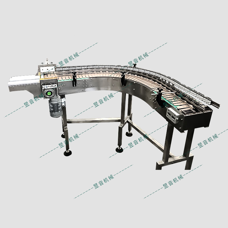 廣泛適用于食品,罐頭,藥品,飲料,化妝品和洗滌用品,紙制品,乳業(yè)及煙草等行業(yè)的自動(dòng)輸送、分配和后段包裝的連續(xù)輸送,可以滿足飲料貼標(biāo)、灌裝等設(shè)備的單列輸送要求,滿足殺菌機(jī)、儲(chǔ)瓶臺(tái)、冷瓶機(jī)的大量供科要求,可將兩條鏈板的頭尾部做成重疊式的混合鏈,使得瓶體處于動(dòng)態(tài)過(guò)渡狀態(tài),使輸送線上不滯留瓶子,可以滿足空瓶及實(shí)瓶的壓力和無(wú)壓力輸送。