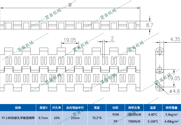 網(wǎng)帶廠家上海昱音機(jī)械優(yōu)價供應(yīng)的模塊網(wǎng)帶節(jié)距主要有:節(jié)距12.7mm食品網(wǎng)帶,節(jié)距15.2mm食品網(wǎng)帶,節(jié)距19.05mm食品網(wǎng)帶,節(jié)距25.4mm食品網(wǎng)帶,節(jié)距27.2mm食品網(wǎng)帶,節(jié)距46mm食品網(wǎng)帶,節(jié)距50.8mm食品網(wǎng)帶,節(jié)距57.2mm食品網(wǎng)帶。