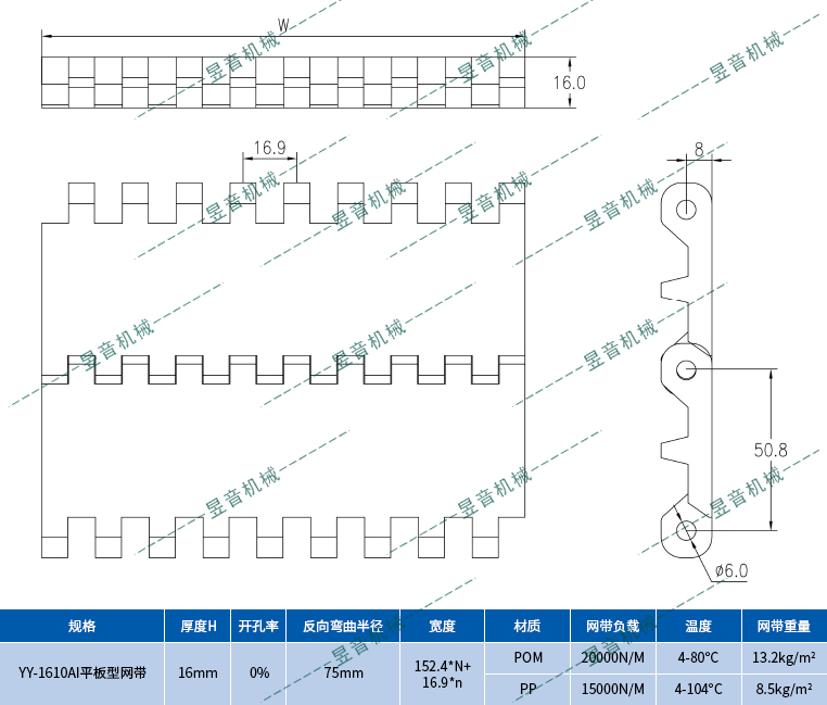 1610AI平板型網(wǎng)帶(反面一條筋型)